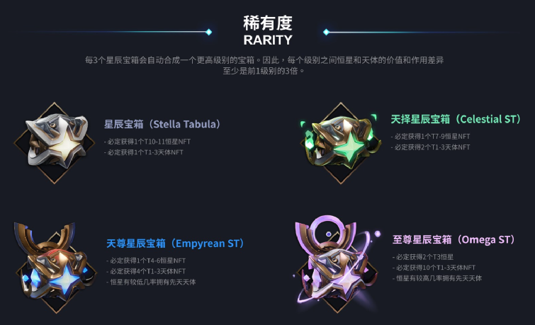 据官网消息,即将在十月十八日预售的星辰宝箱,会包含不同级别和数量的恒星NFT和天体NFT。