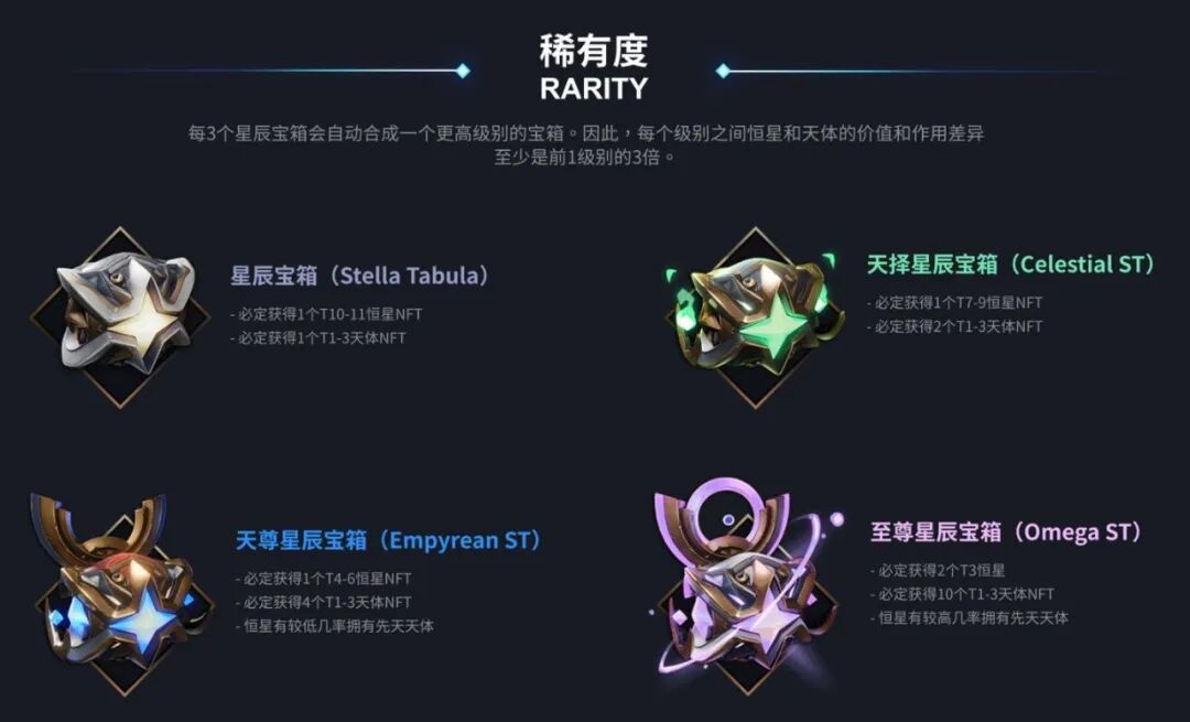 据官网消息,即将在十月十八日预售的星辰宝箱,会包含不同级别和数量的恒星NFT和天体NFT。